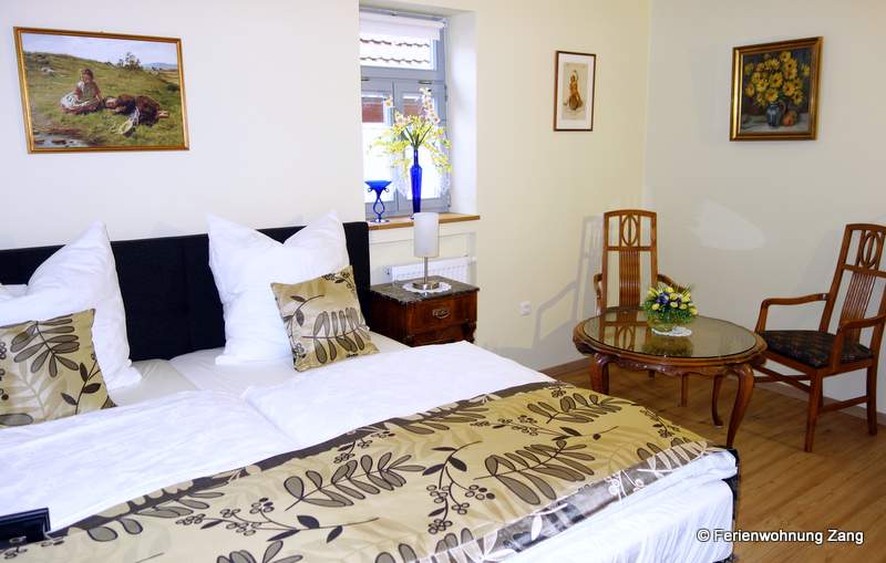 Das Ferienzimmer im Obergeschoss bietet Platz für 2 Personen und ist ausgestattet mit Sat-TV und einem kleinen Bad mit Dusche und WC: